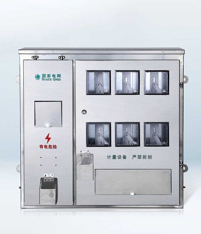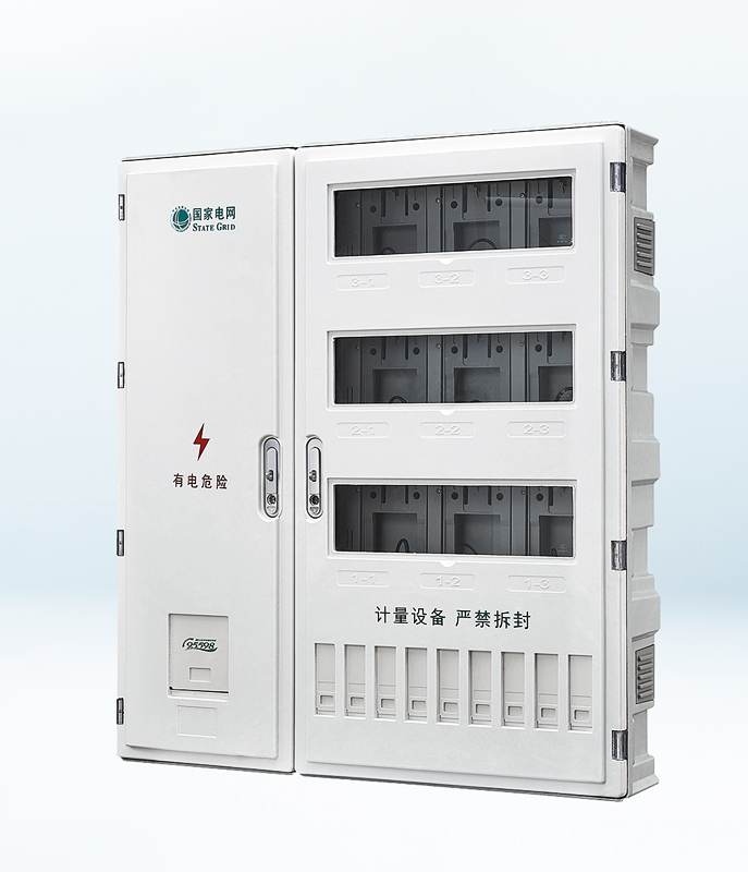 国网系列电能计量箱采用集成化设计理念,将一到二十户各式电能表、互感器、控制开关等电力设备集装于一体化封闭箱内,不仅占用空间小,易于安装和管理,而且能够阻止窃电者触及计量装置,防止窃电行为。同时具有绝缘性高、透气性能好、抗紫外线、耐老化、耐酸雨、耐盐雾、耐低温耐高温、抗冲击等性能,并有良好的通风、防雨、散热等功能。电能计量箱箱体造型美现,比例匀称、线条流畅,通过背部的预留螺栓孔可以方便、牢固地安装在混凝土墙面上。箱内元器件结构紧凑,布局合理,线路走向顺畅明晰。箱盖通过挂钩、螺丝及挂锁箱体互锁,只有用电管理人员借螺丝扳手和钥匙才可以开启。箱盖采用透明PC材料设计,用电管理人员不需要开启便可直接看到箱内电能表的各类异常现象,从而提高排除用电中的安全隐患,从而实现“安全用电、预防为主”的管理目标。